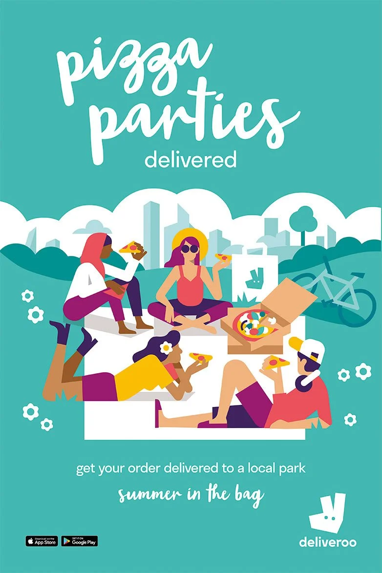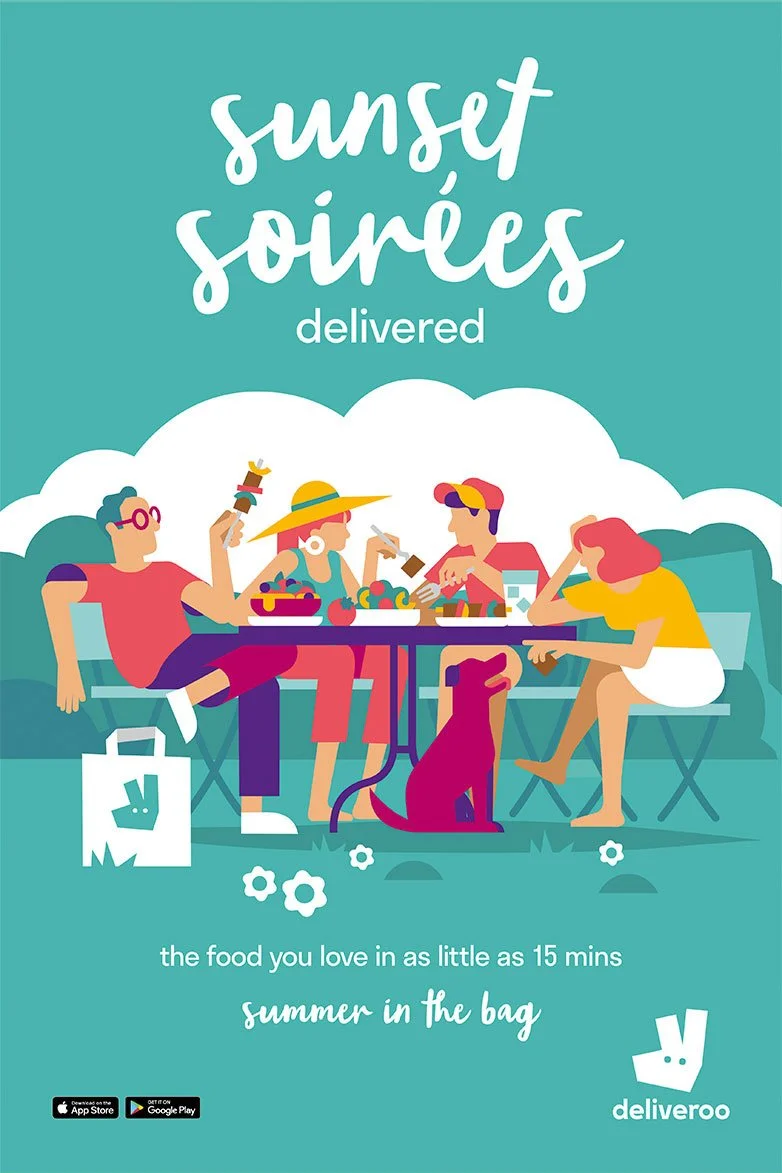 Brand illustration style development, Nationwide OOH billboard campaign, UI design for the Deliveroo consumer and rider mobile apps, Social media campaigns, various marketing and comms.